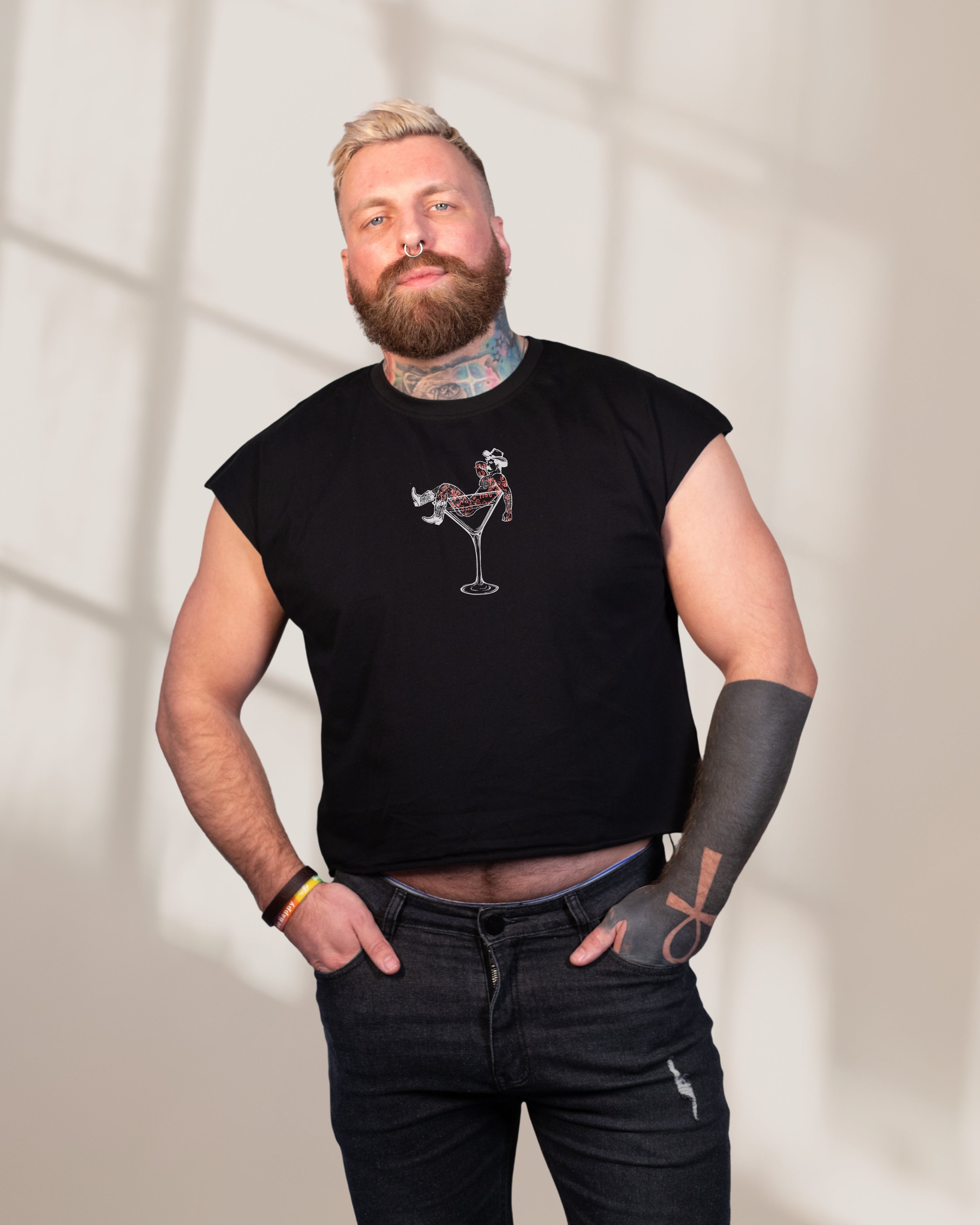 'Cocktail Man' - DEN X LOMAX - Crop Tee - Black