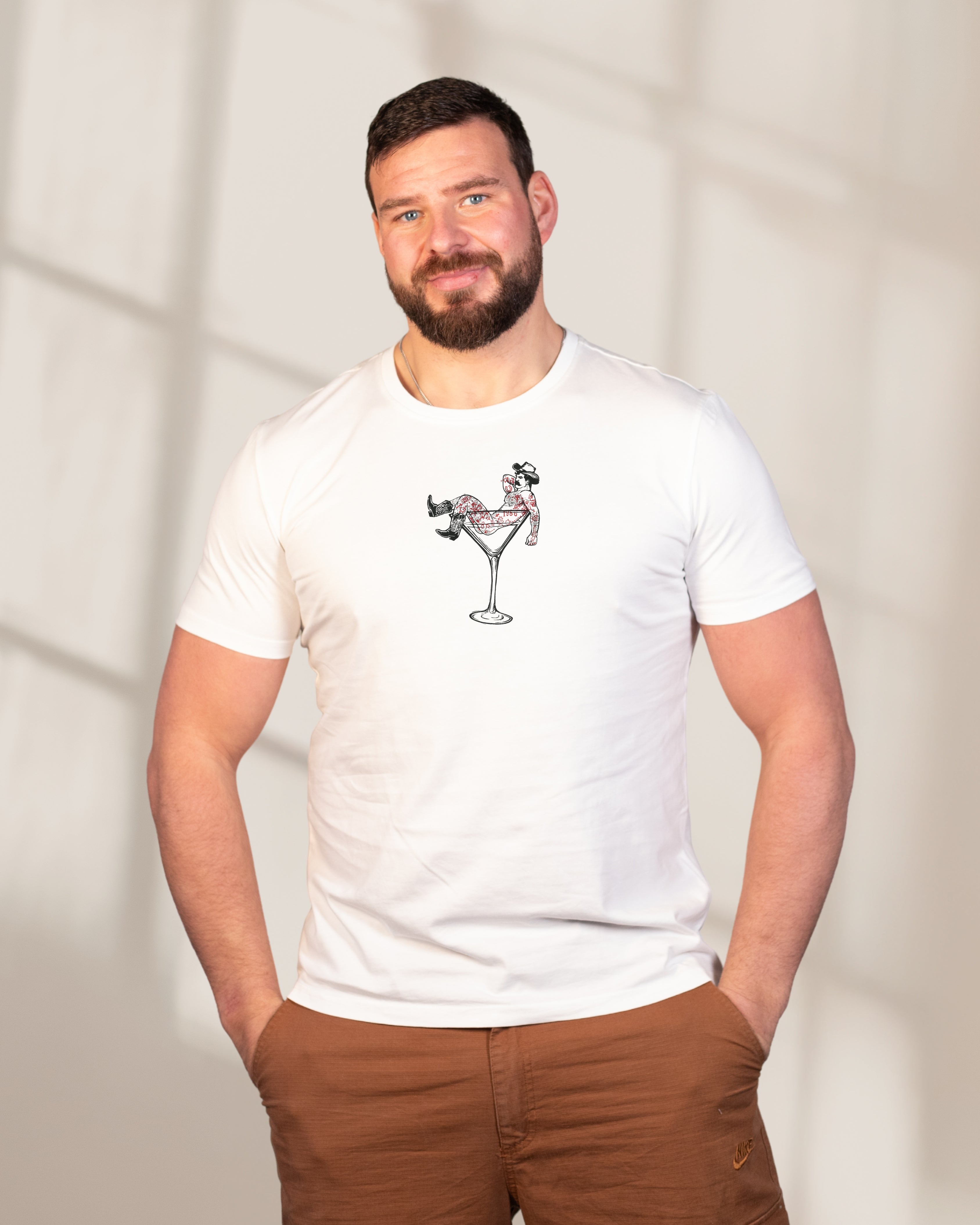 'Cocktail Man' - DEN X LOMAX - Regular Fit Tee - White