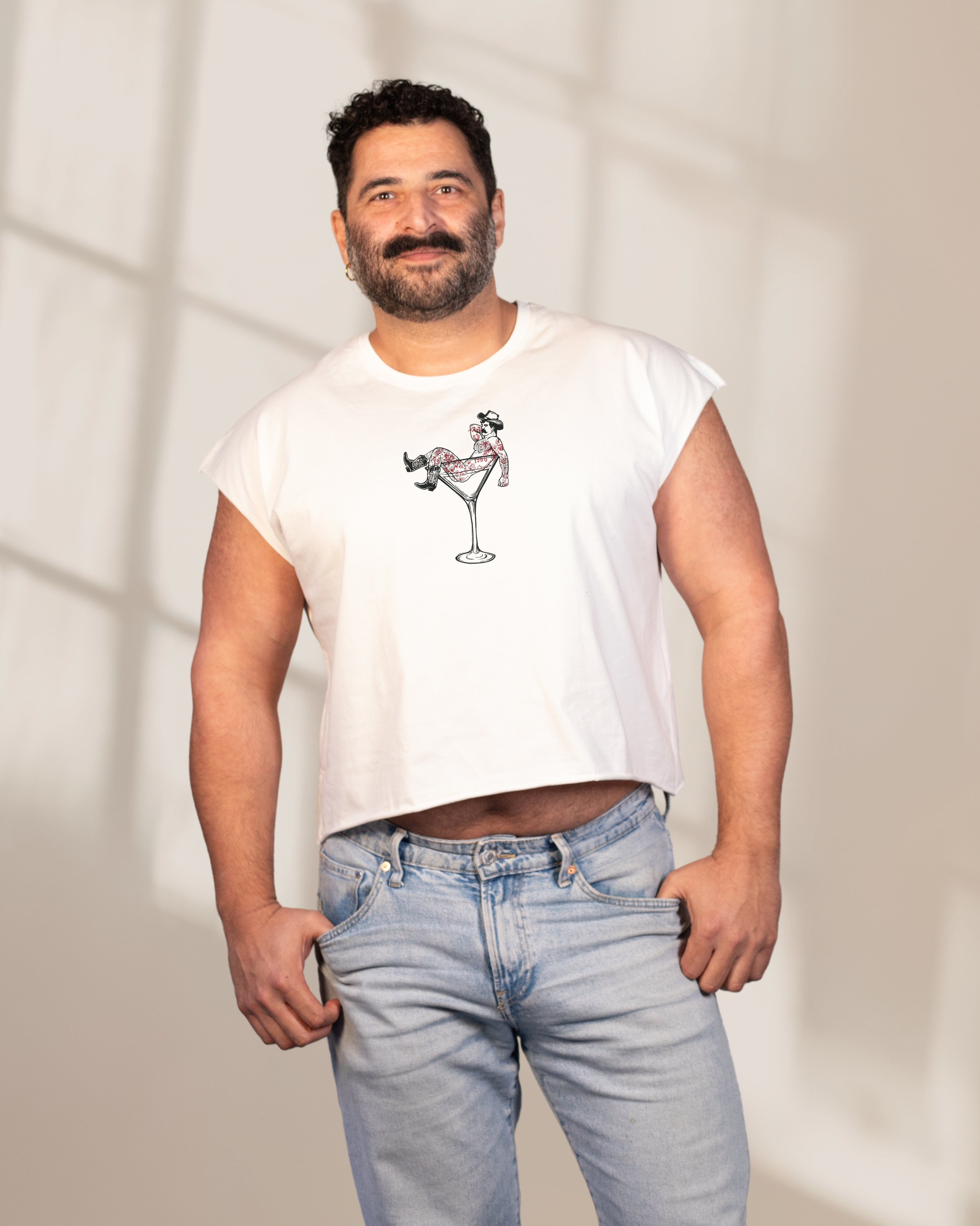 'Cocktail Man' - DEN X LOMAX - Crop Tee - White