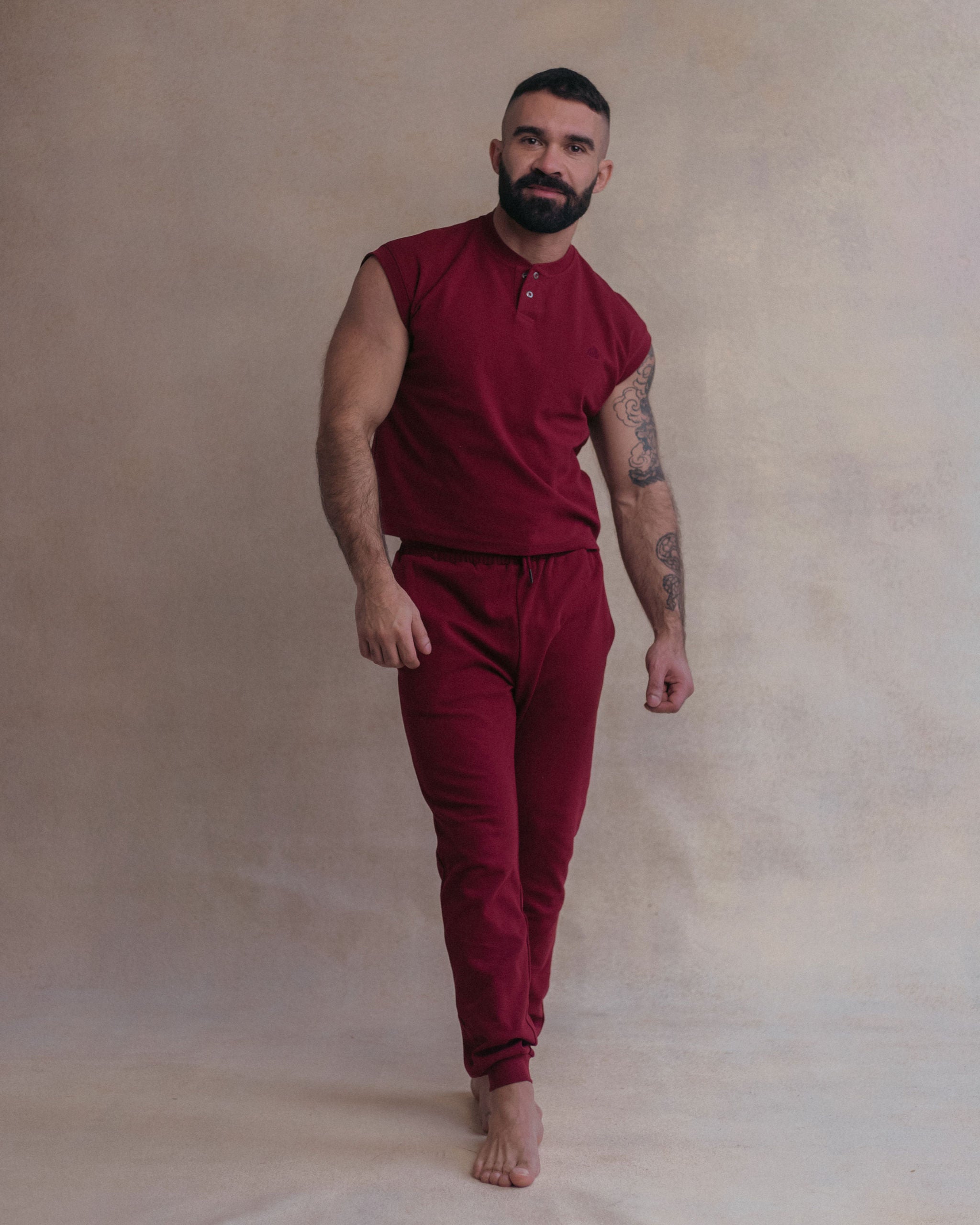 Premium loungewear separates, crafted from our signature stretch-rib cotton union suit fabric and finished with our distinctive ring-popper fastenings for a refined touch.