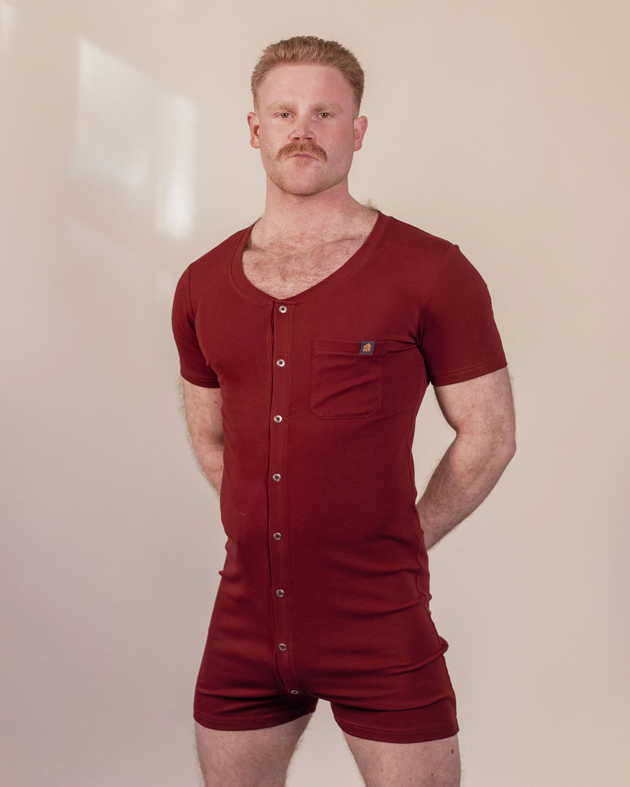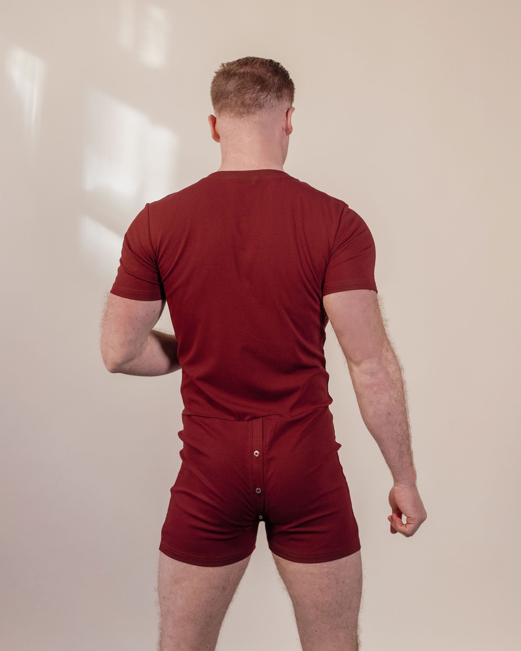 Summer-weight Short Sleeve Union Suit - Burgundy