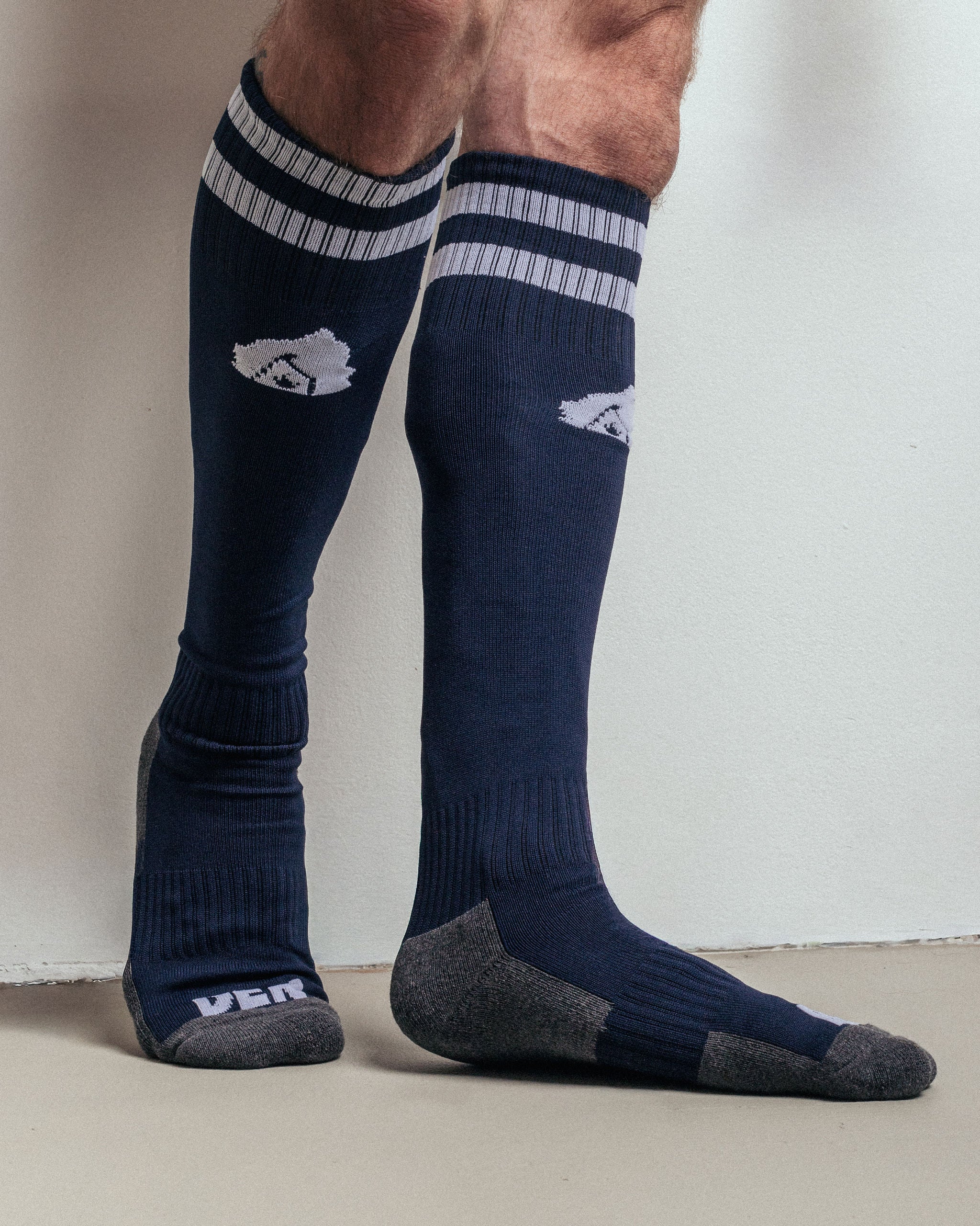 Mit DEN-Logo auf dem Schienbein und DEN-Wortlogo über den Zehen. Einheitsgröße.