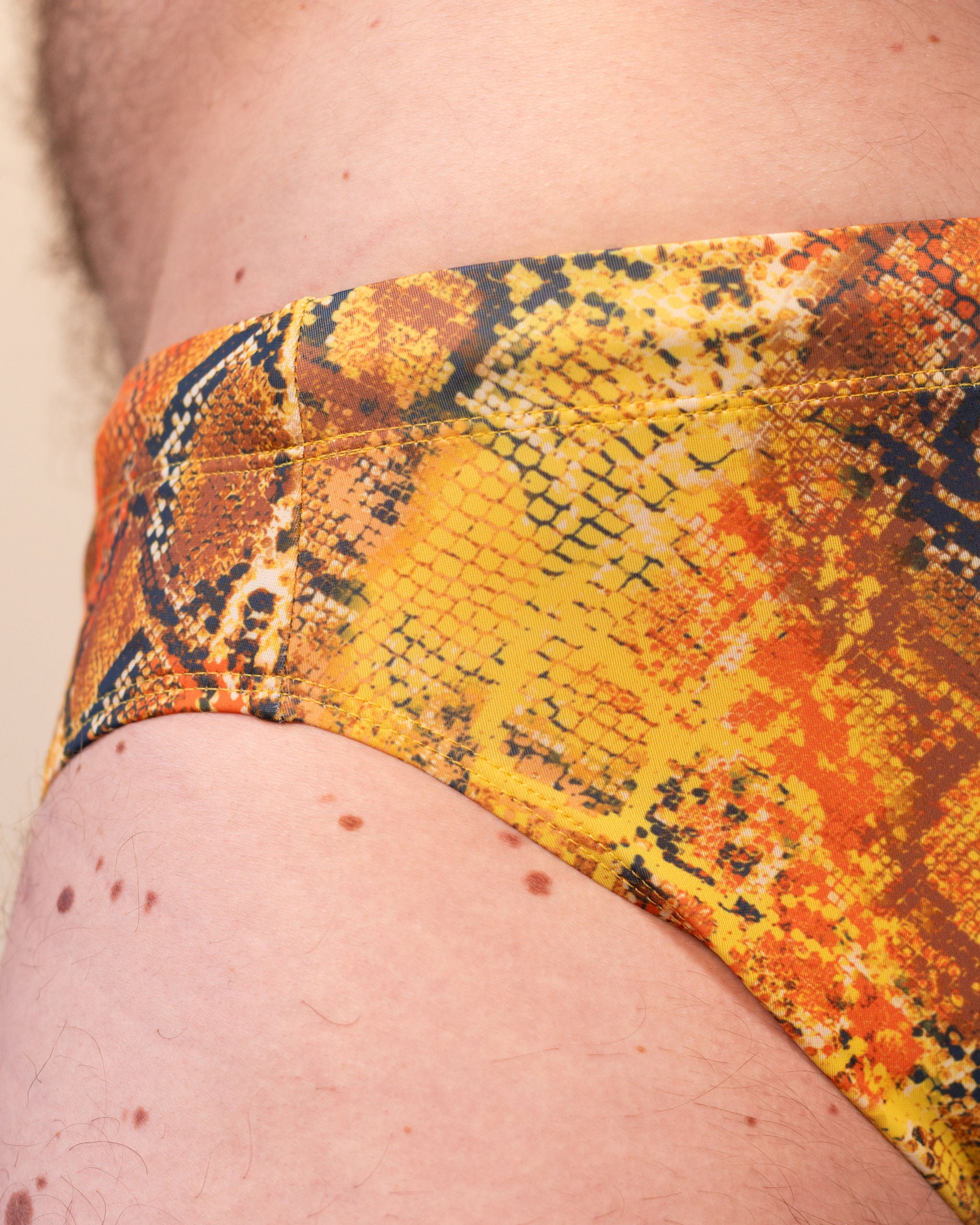 Our REGULAR swim brief is cut with a wider hip and sits slightly higher on the waist, with additional coverage around the rear.