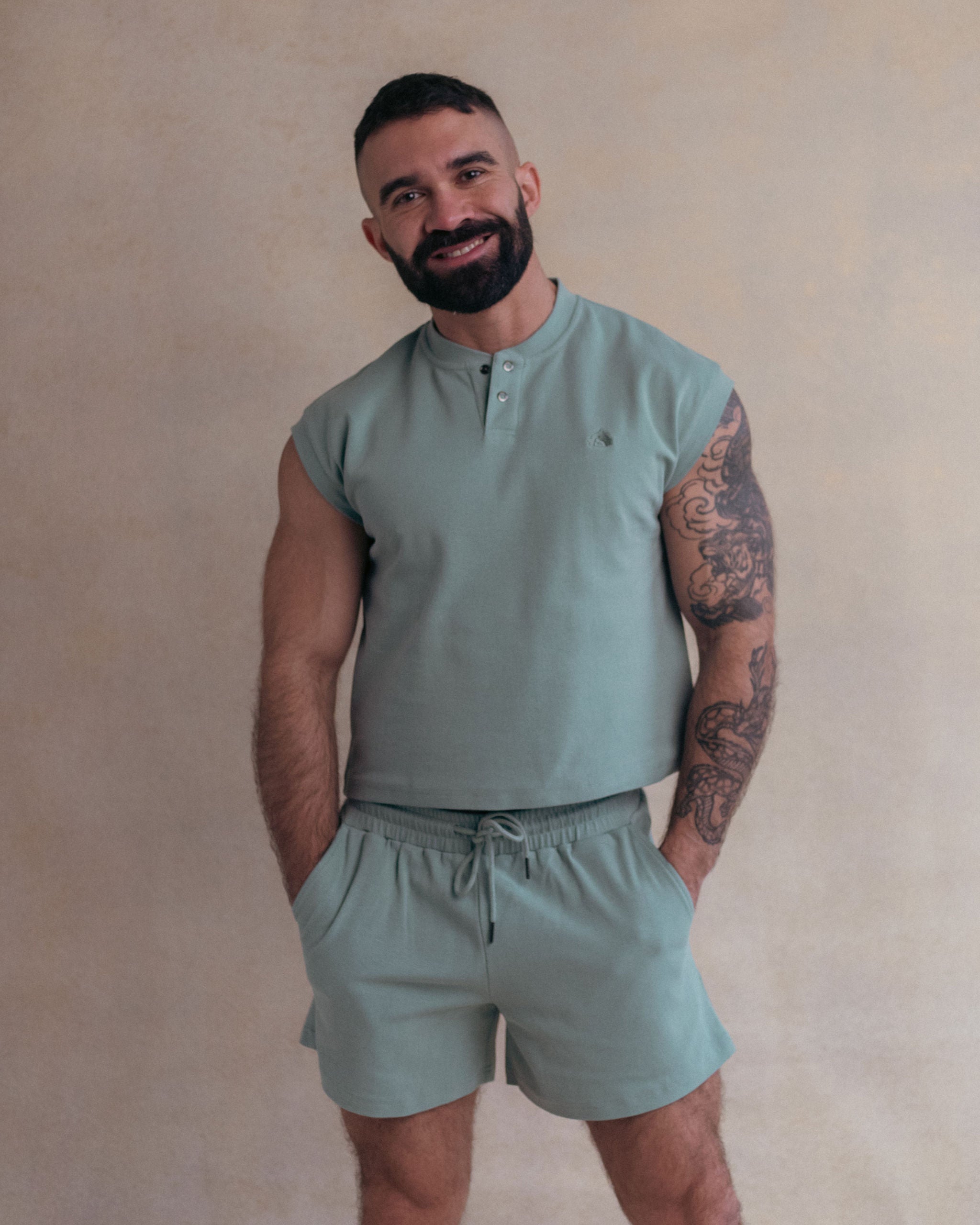 Premium loungewear separates, crafted from our signature stretch-rib cotton union suit fabric and finished with our distinctive ring-popper fastenings for a refined touch.