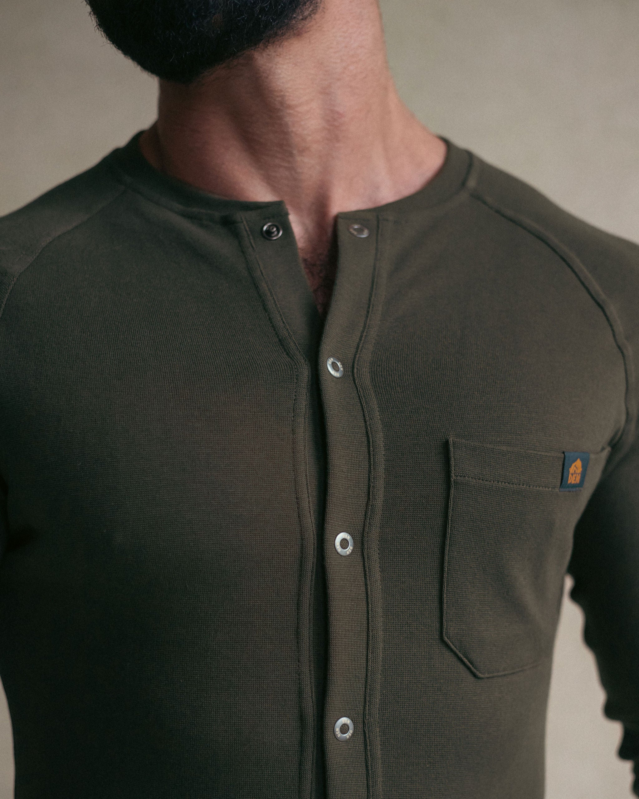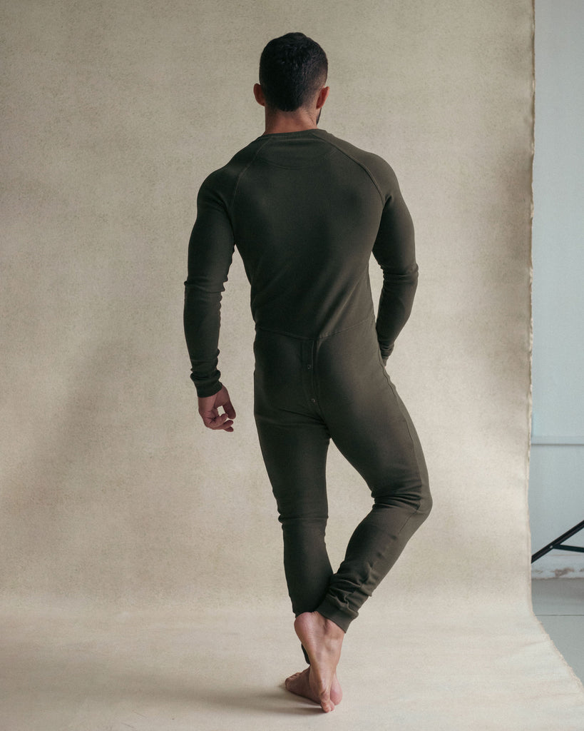 The Dark Olive long Sleeve Union Suit features our new, best-ever ring-style popper fastenings. The stretch cotton fabric and ergonomically designed seams help fit snugly to the body and maintain shape and structure wear after wear.