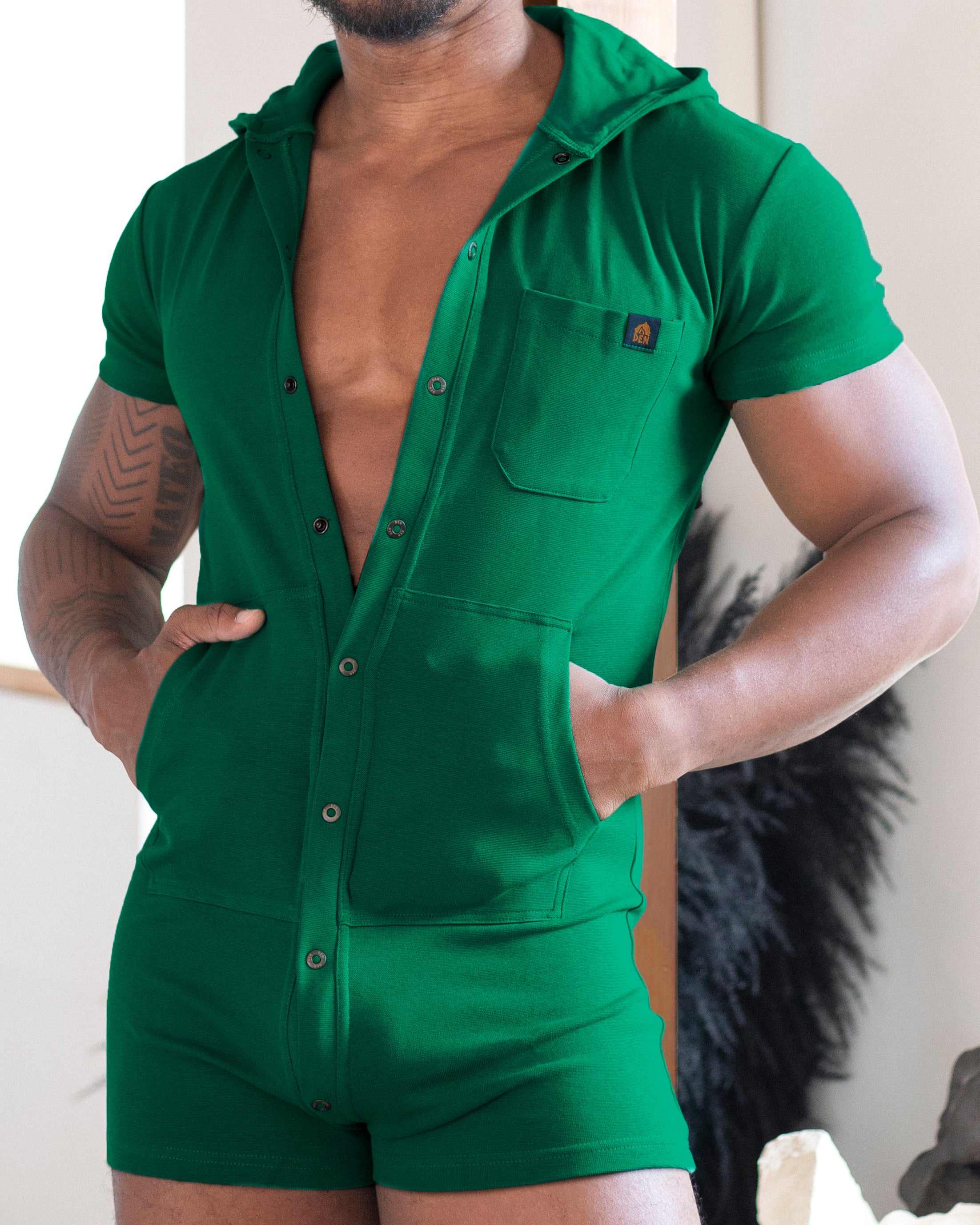 Short Sleeve Hooded Union Suit - Bold Green - LIMITED EDITION