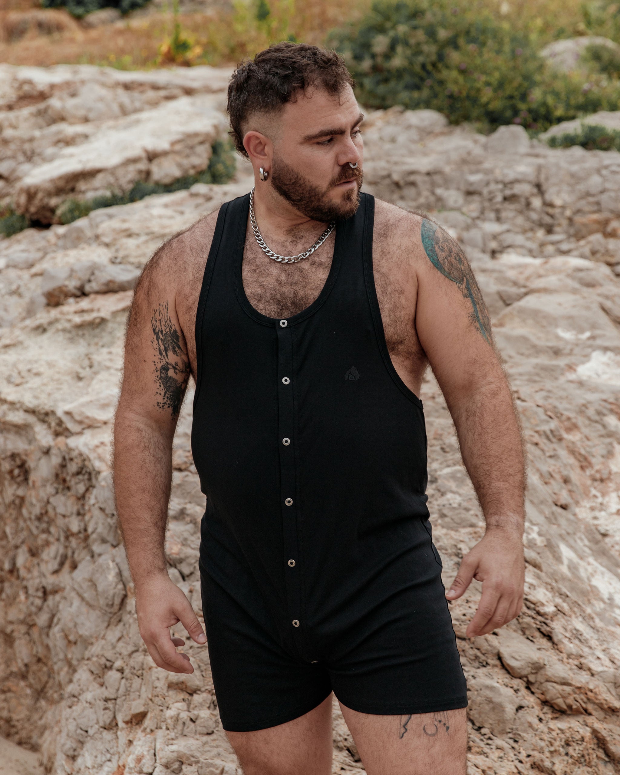 Designed with a tonal chest logo embroidery, racer back styling and full popper fastening from the neckline all the way down, around, and to the bum — it's the DEN Union Suit styling you know and love, remixed for the new season!